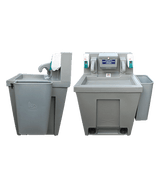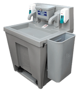 The Water Basin is fully outfitted with two molded-in maintenance-free spigots, two high capacity spray soap dispensers and a lockable single fold paper towel dispenser. Attached is a large trash receptacle promoting users to toss away used paper towels to encourage cleanliness.