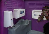 The PURPLE POTTY is a kid sized portable toilet for any event children will be in attendance. The interior’s step stool allows for easy access to the toilet seat and sink. Equipped with all the extra amenities available at high end catering halls including, a hand washing sink, soap dispenser, paper towel dispenser, HEADLINER toilet seat covers, HEADMIST timed released air freshener, and flowers. This portable toilet is colorful, convenient, and inviting. It is sure to delight both children and parents at your special event.