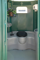 The GARDEN HEAD is an excellent porta potty for your special event when you want a full service porta potty that will add beautiful decor. This is a full service designer portable toilet that is affordably priced. Guests will not only enjoy the sight of beautiful roses on this portable restroom, they will enjoy using it too. CALLAHEAD supplies all the added accessories with this portapotty's rental, providing your guests the VIP treatment they’ll appreciate.